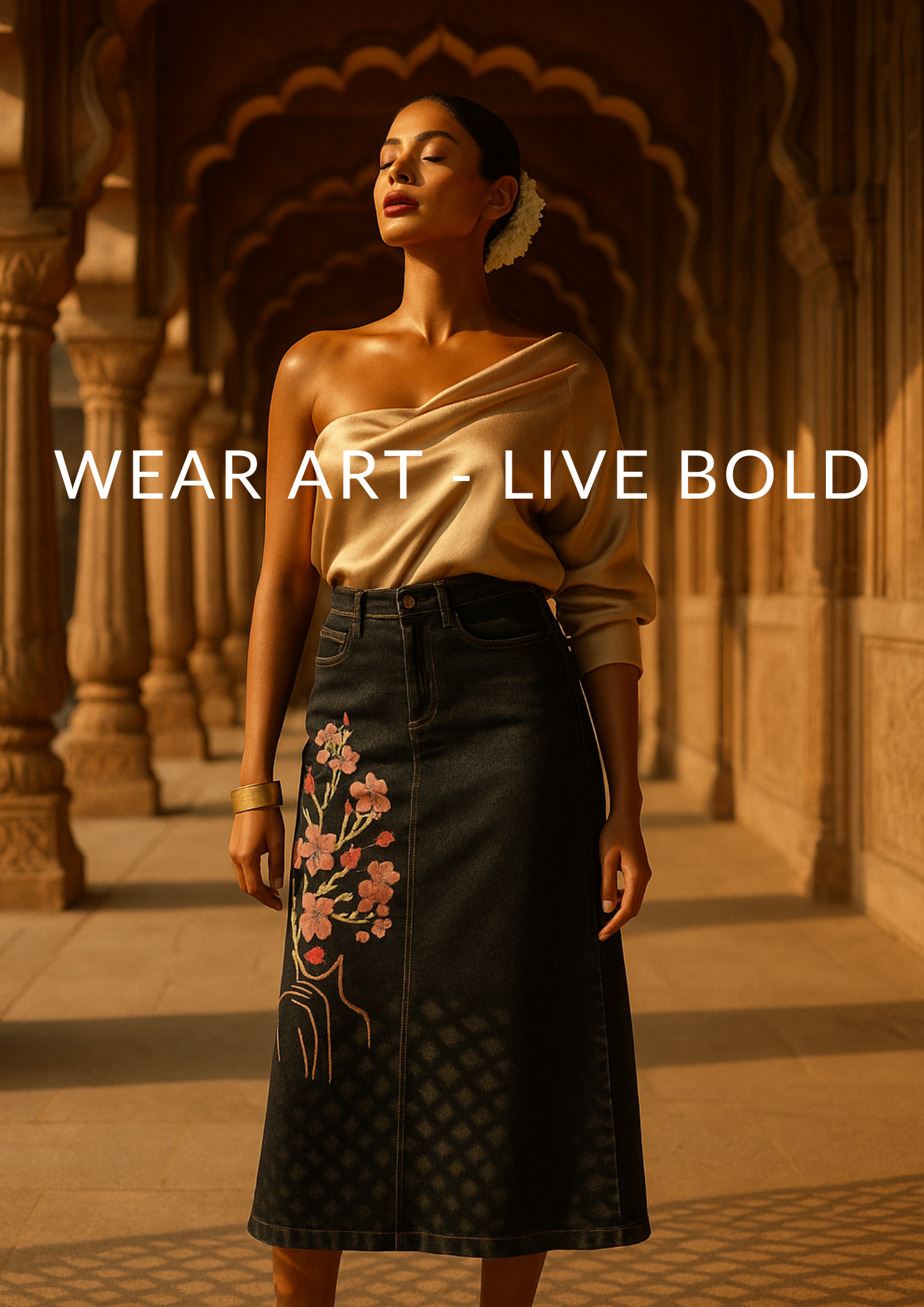 Anukriti Sharma, Content Writer | LucknowPop Art Glam Denim Skirt Gotamoda has revolutionized wearable art! The Pop Art Glam skirt is literally a masterpiece. The eye and lip design is so bold and beautifully executed. I've worn it to several gallery openings, and it's always a conversation starter. The quality of the denim and the artwork's durability have impressed me immensely.