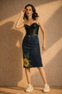 This denim skirt features a charming sunflower motif, adding a burst of creativity to your wardrobe. The high-quality denim fabric ensures durability while maintaining a soft touch. With its midi length, this piece gives you a versatile fit that transitions easily from day to night.