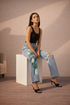 This pair has a classic high waist fit. The jeans do not stretch, so they keep their shape. Non-stretch denim feels sturdy and holds up well. The Tulip Bloom Jeans Non stretch Artist edition is ideal for casual days or when you want to make a statement.